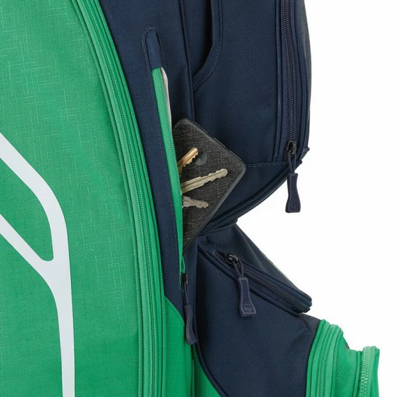 La bolsa TaylorMade Cart Lite pesa solo 2.5 kg y presenta una parte superior de 14 vías más tradicional para que pueda dividir sus palos. Todos los bolsillos de esta bolsa están orientados hacia el frente para facilitar el acceso a sus accesorios.