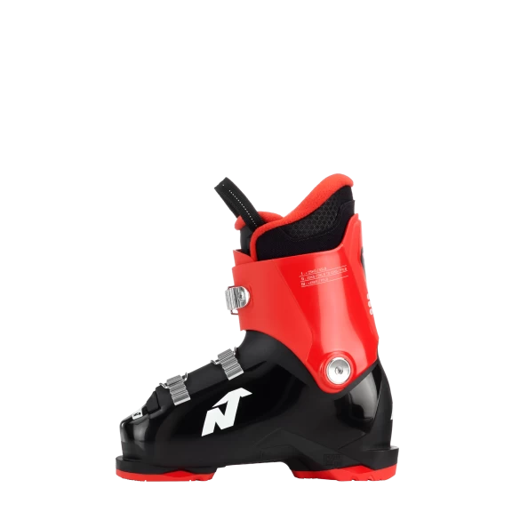 Botas esquí Nordica Speedmachine J 3 negro rojo junior, botas de esqui de niño con 3 ganchos de alumino para un ajuste perfecto del pie , botin de forro al una gran confort, dureza ajustable 35-45 flex , para esquiadores intermedios , y facil de poner.