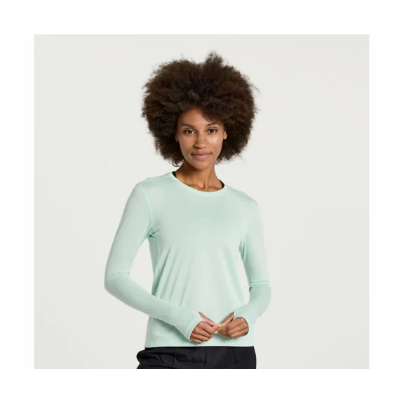 Camiseta running Saucony Stopwatch Long Sleeve verde mujer
