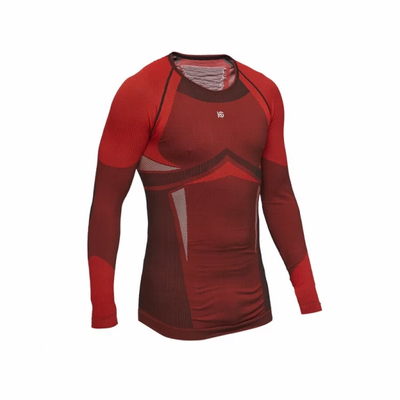 Camiseta técnica de hombre de manga larga para esquiar. Protección lumbar con fibra de carbono y zonas de máxima transpirabilidad en espalda y axilas. Termorregulación inteligente, tejido superabsorbente, capa antibacteriana, antiolor y protección UPF + 40.