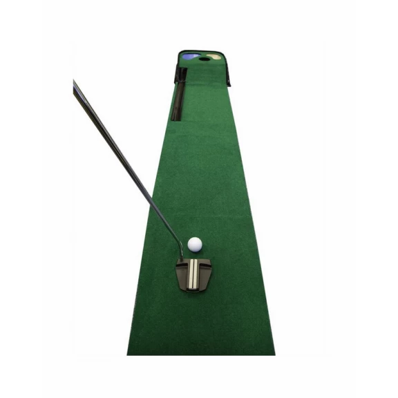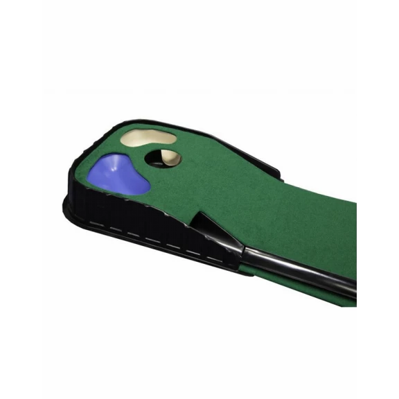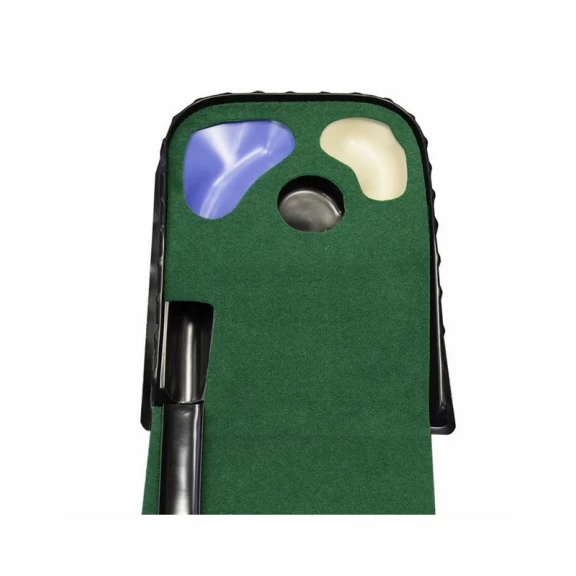 La alfombra de Putt ‘N’ Hazard Putting de Longridge tiene un agujero al que apuntar, un búnker y un estanque que evitar.