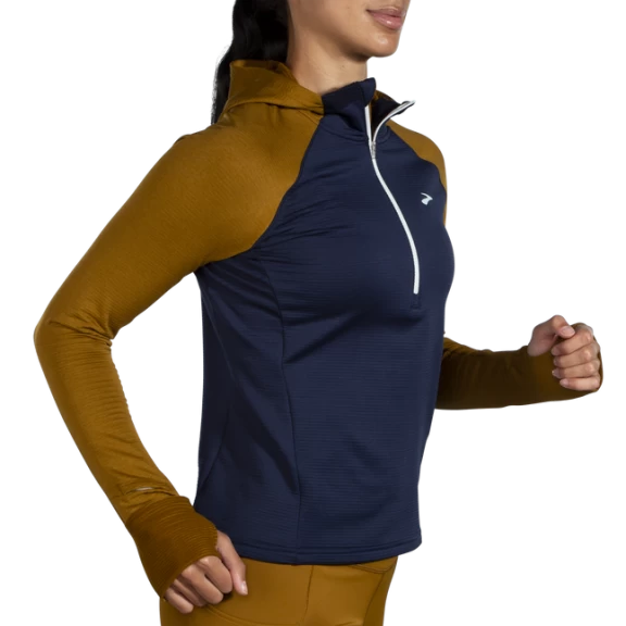 Sudadera running Brooks Notch Thermal 2.0 azul marrón mujer