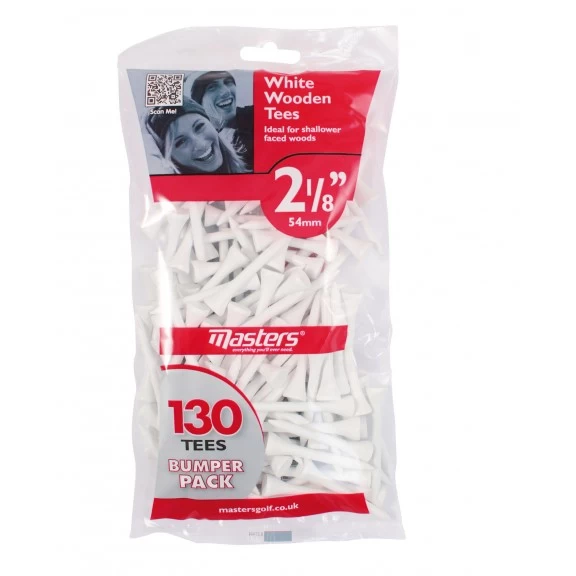 MASTERS WOOD 54MM: Tees Masters Bumper, clásicos de madera blanca Masters se han probado a lo largo de los años demostrando su durabilidad y robustez, un favorito definitivo para todos los golfistas de cualquier nivel. 2 1/8″ / Pack 130 unidades.