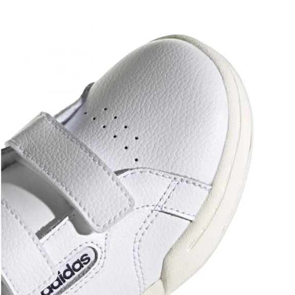 Zapatillas infantiles de inspiración clásicas de la marca adidas, parte superior de piel sintética resistente, tiras ajustables de velcro para poner y quitar fácilmente, suela de caucho.