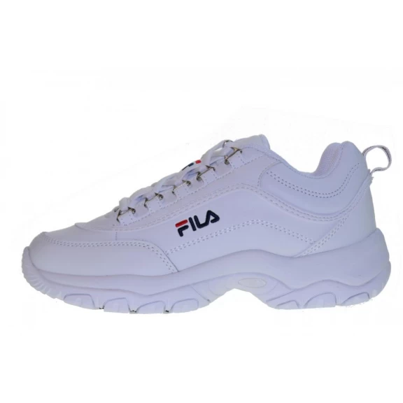 Zapatilla deportiva casual de la marca Fila para mujer en color blanco, fabricada en piel sintética, cierre de cordones y suela de goma, suela con plataforma que proporciona mejor amortiguación, logotipo de la marca bordado en el lateral.