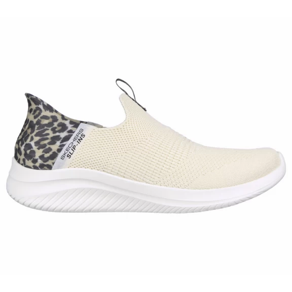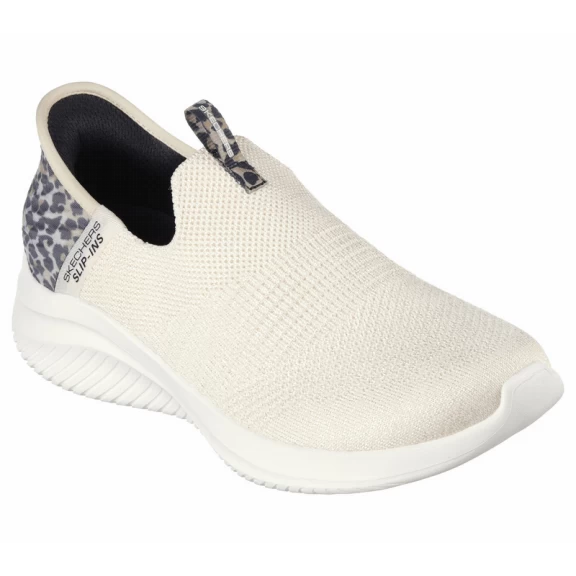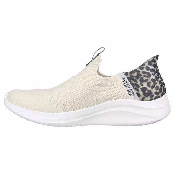 Las zapatillas Skechers Slip-Ins Ultra Flex 3.0 -beige son perfectas para quienes buscan comodidad y estilo. Con su diseño exclusivo Comfort Pillow y plantilla Skechers Air-Cooled Memory Foam®, garantizan la comodidad en cada paso. Además, su diseño Stretch Fit® con cordones tan cómodo como si llevaras calcetines, las hace aún más cómodas. Fabricadas con materiales 100% veganos, su parte superior de knit técnico y ribete con estampado de leopardo las hace muy atractivas. Con una media suela ligera con absorción de impactos y una suela superflexible con tracción, estas zapatillas son perfectas para cualquier actividad. Además, son lavables a máquina y tienen un talón de 3,17 cm. Con el logotipo de Skechers®, estas zapatillas son una excelente opción para cualquier mujer que busque comodidad y estilo.