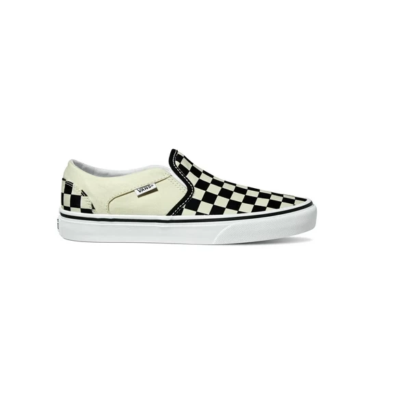 Zapatillas Vans Asher negro/blanco de cuadros sin cordones, con acabados laterales elásticos y cuello acolchado para más confort.