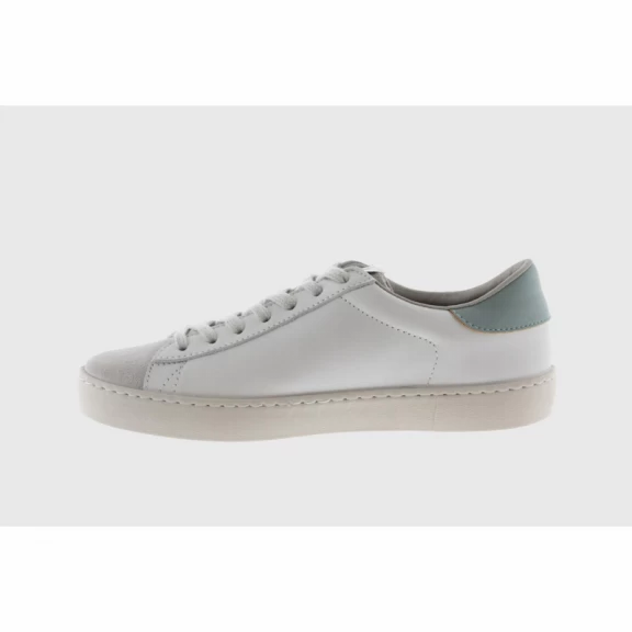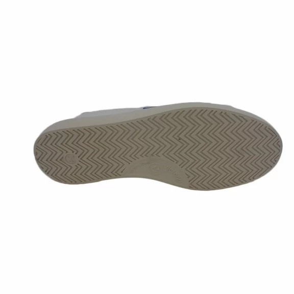 Las zapatillas Victoria 1126142 están elaboradas en cuero 100% de color beige con la puntera de serraje y los detalles verde en la V de Victoria y el talón que le dan un toque de color.