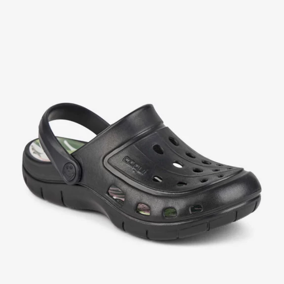 Zuecos Coqui Jumper negro tropical mujer especificamente pensada para la piscina, la playa ir a natacion o estar por casa este verano.