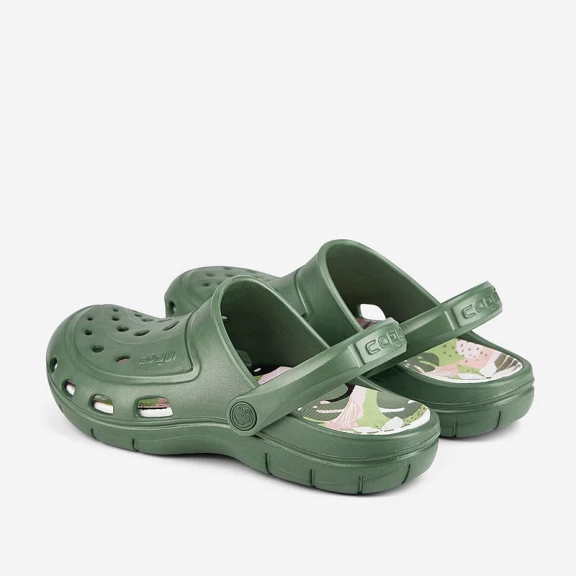 Zuecos Coqui Jumper verde tropical mujer muy comodos tanto para ir a la pisicna, la playa o estar comodamente en casa.
